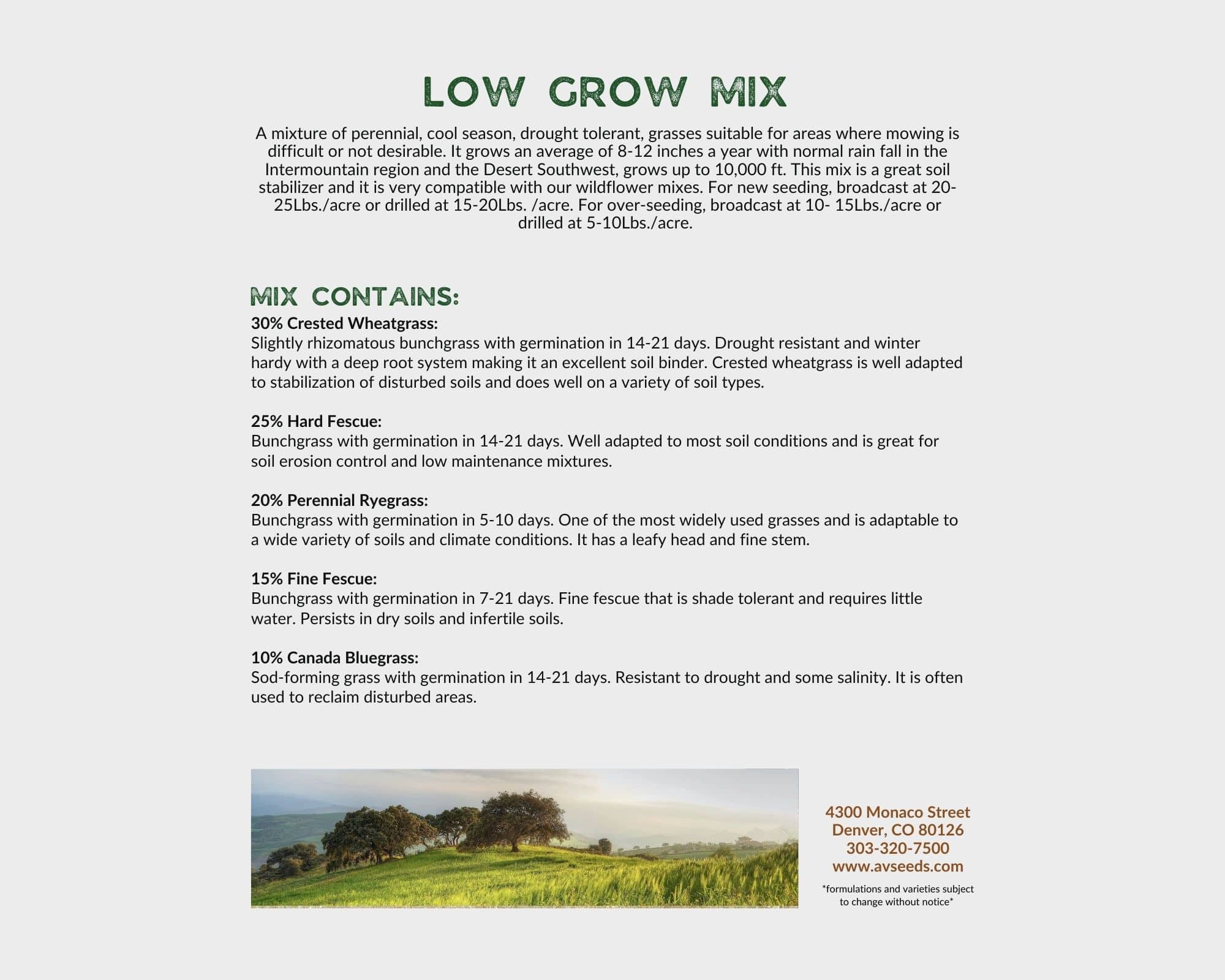 Low Grow Mix Contains: